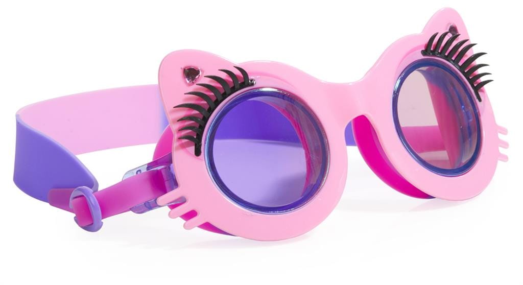 Deze sprankelende zwembril is gemaakt voor kinderen vanaf 6 jaar die houden van glamour en een vleugje diva. De zwembril met coole katten ogen heeft mooie lange wimpers op de bril.