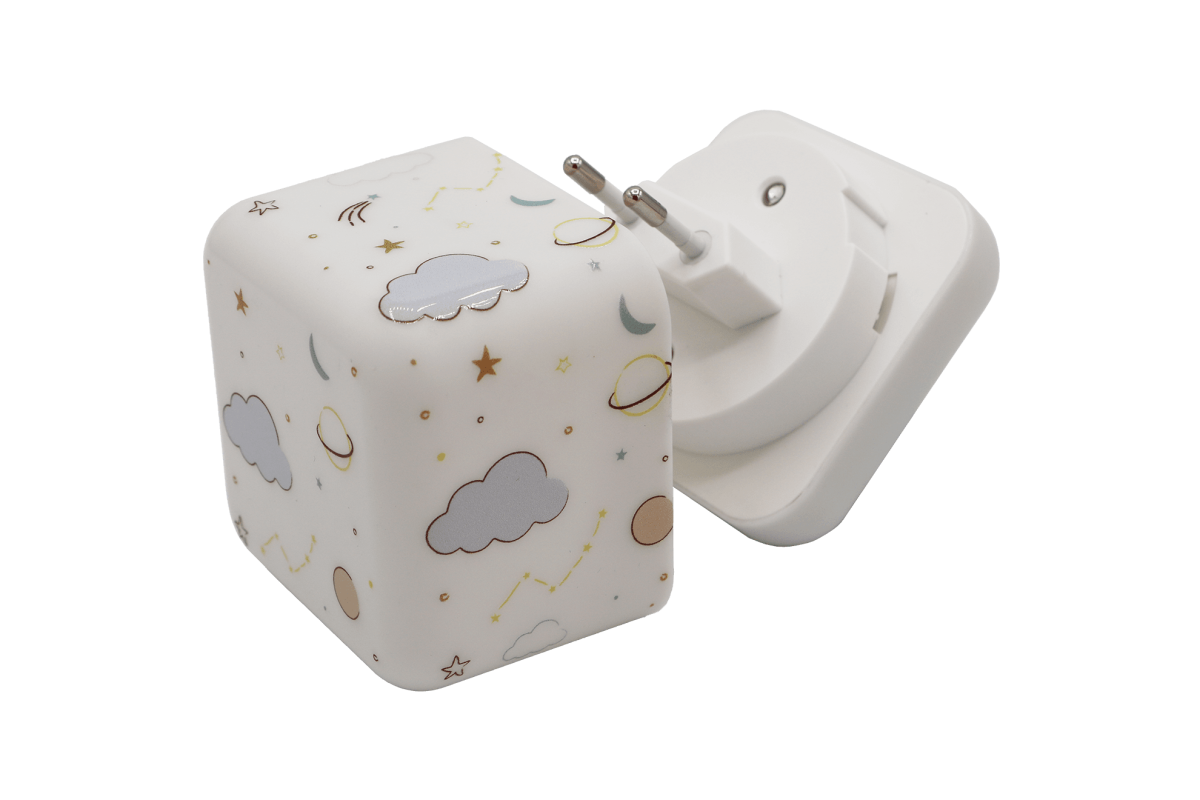 De Cube B Lily combineert een vaste voet voor het stopcontact met een los bovendeel. Zo gebruik je hem als plug‑in nachtlampje of als reislampje. Met de tap‑sensor wissel je eenvoudig tussen zacht wit licht en een rustgevende, kleurige gloed – perfect als wit en roze licht nachtlampje voor eenhoornliefhebbers. Je kunt de helderheid aanpassen zodat het licht comfortabel is voor jouw kind.