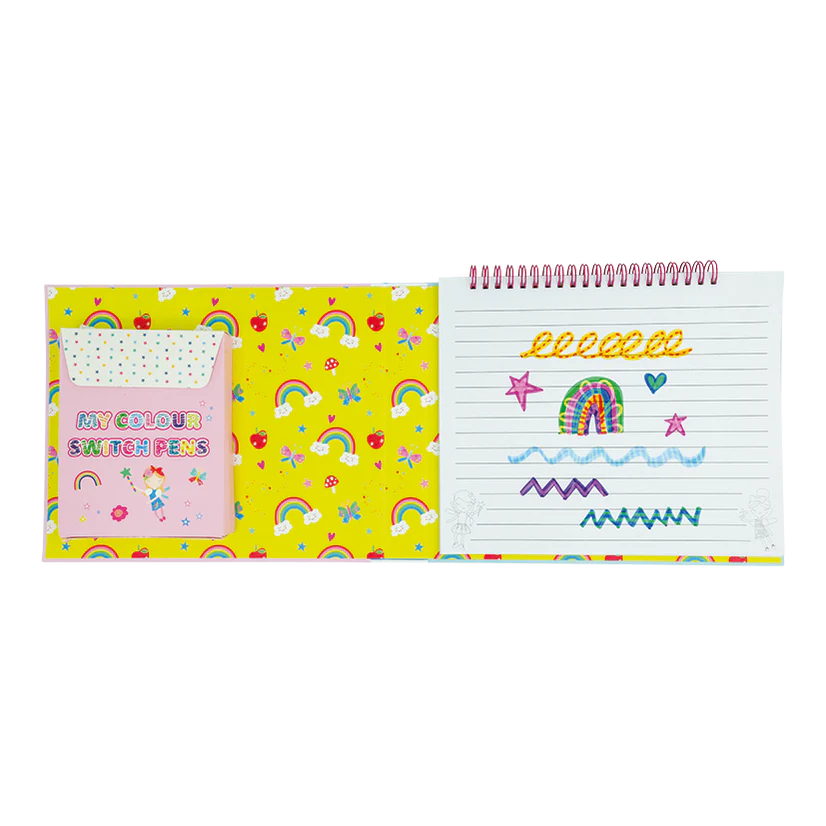 Met de magische witte pen veranderen 6 kleuren in 12, wat zorgt voor uren creatief plezier! Maak prachtige patronen en ontdek eindeloze mogelijkheden. Dankzij de handige ringband blijft alles netjes bij elkaar. Gebruik de magische witte pen om letters meerkleurig of gestreept te maken, laat je fantasie los op de doedelpagina’s en ontdek nieuwe creatieve technieken! De kleurplaten stimuleren concentratie en geduld, terwijl de stickers je kunstwerken compleet maken. Colour Switch Magic is perfect om schrijf-, teken- en kleurvaardigheden te ontwikkelen. Aanbevolen leeftijd 3+