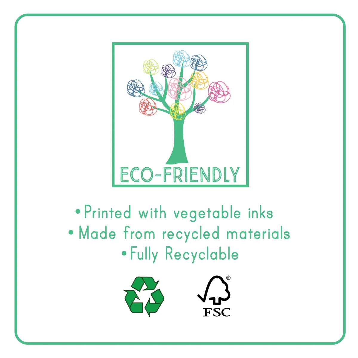 • Milieuvriendelijk: gedrukt met plantaardige inkt, al het papier en karton is recyclebaar, FSC-gecertificeerd