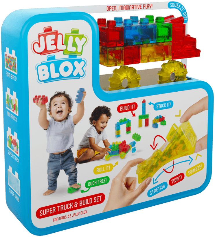 Laat de fantasie van je kind de vrije loop met de Jelly Blox Vroom Truck Kit. Deze set bevat 32 zachte, kleurrijke bouwblokken waarmee peuters hun eigen stoere auto kunnen ontwerpen. Elk blok is gemaakt van flexibel materiaal dat je kunt knijpen, uitrekken of zelfs platdrukken; sommige blokken zijn gevuld met zand, schuimballetjes of kraaltjes om de zintuigen extra te prikkelen. Het ouch‑vrije ontwerp betekent dat het geen pijn doet wanneer er op een blok wordt gestapt. ideaal voor nieuwsgierige bouwers.