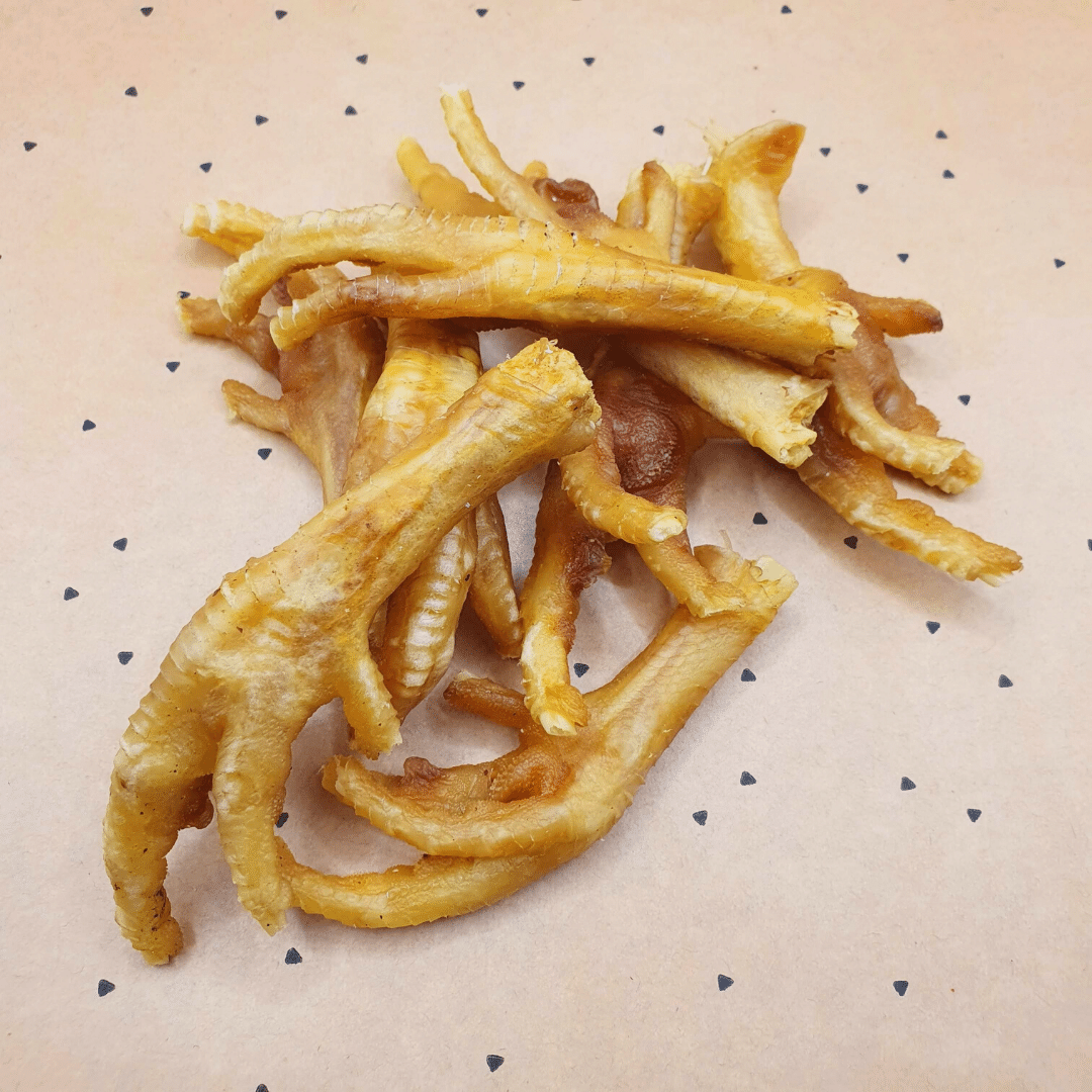 Kippenpoten zijn een gezonde en knapperige snack voor honden rijk aan eiwitten en chondroïtine.
