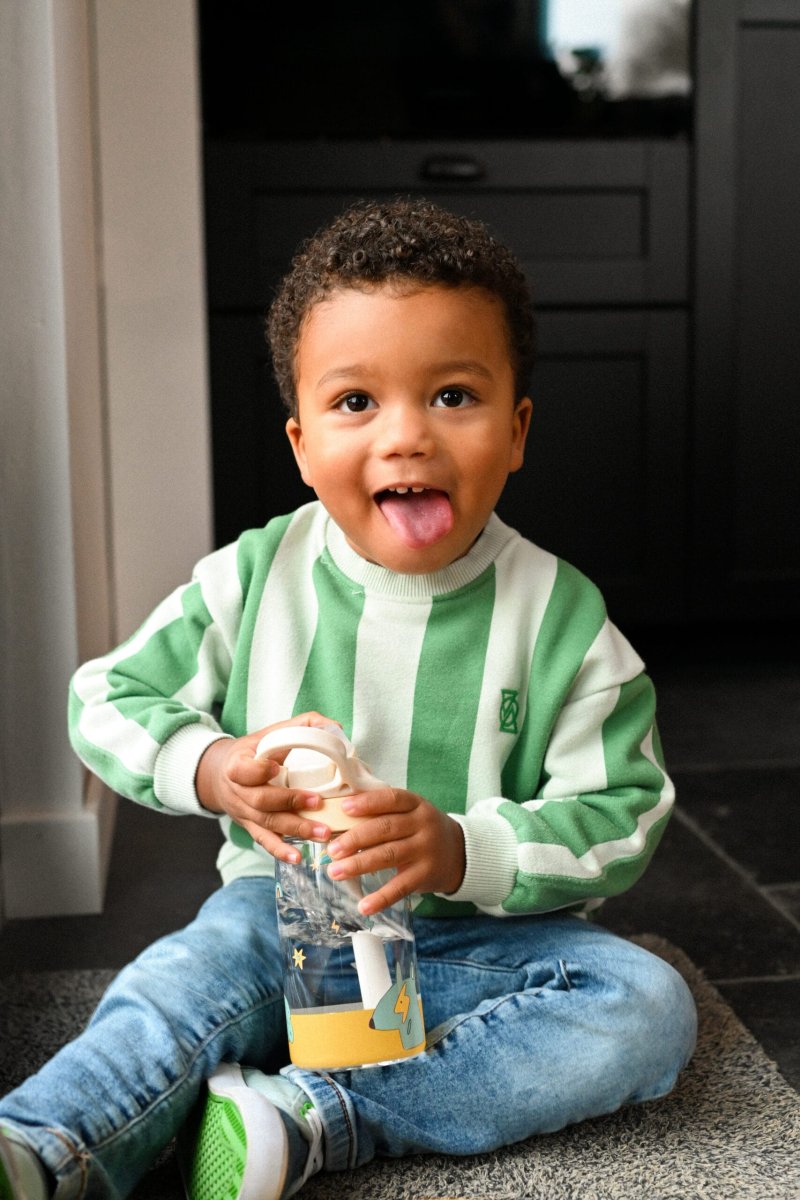 Met de The Cotton Cloud Tritan drinkfles met rietje – Confetti – 480 ml geef je je kind een stijlvolle, duurzame én handige fles mee – elke dag opnieuw!