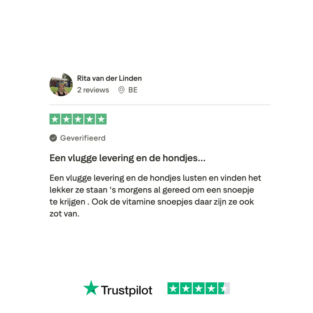 Geef je hond voor een lekkere boost met onze Vitamine Boost: kleine snoepjes met een uitgebalanceerde mix van vitamines en mineralen.